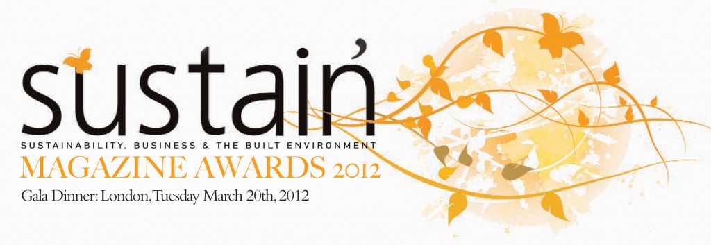 The sustain’ Magazine Awards for Sustainability, Business & the Built Environment are designed to celebrate the high hopes and hard work, commitment and creativity, radicalism and rigour, inspiration and perspiration of all those achieving distinction and success in the field of Sustainability. Building on the standout success of previous years, the 4th Gala Dinner was once again held following the first night of Ecobuild, London, on Tuesday March 20th, 2012. This year’s event was held at the Canary Wharf, Hilton Hotel with host Fred MacAulay.